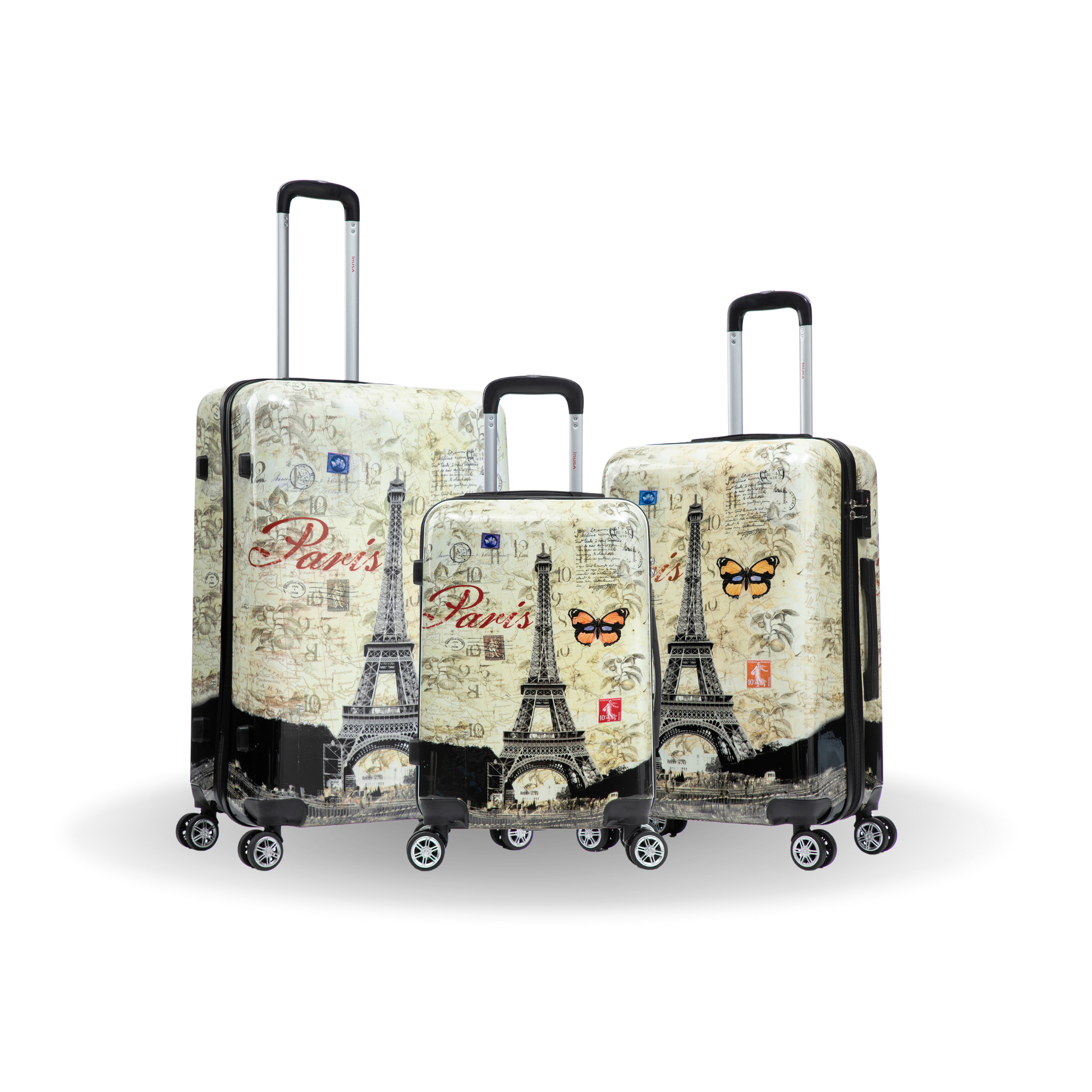 The InUSA Prints 3 Piece Luggage Set is a great option for travel, offering both style and functionality. The set features four spinner wheels,... a water- and scratch-resistant coating, and practical interior features. Additionally, a Travel Sentry® Certified lock ensures your belongings are safe and secure during transit.