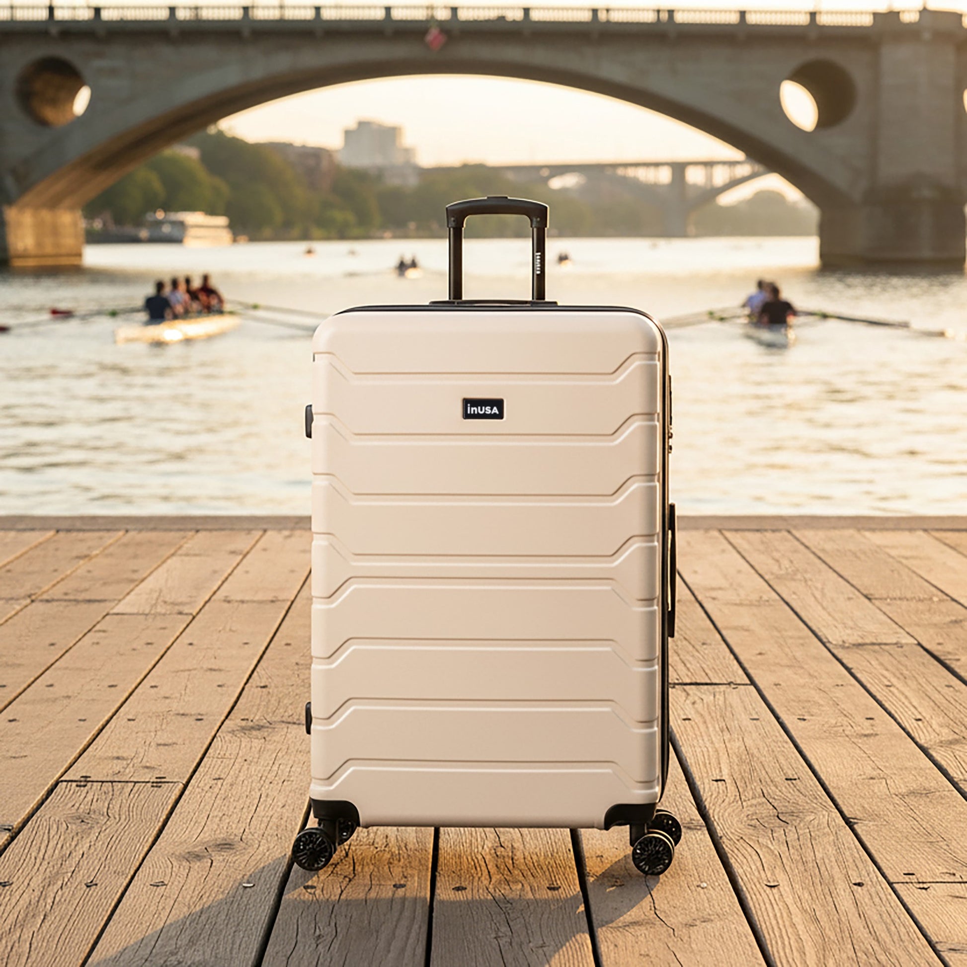 Durable hardshell suitcase with protective side bumpers and a reinforced zipper track. The textured, scratch-resistant surface helps protect against travel wear while maintaining a clean, modern look.